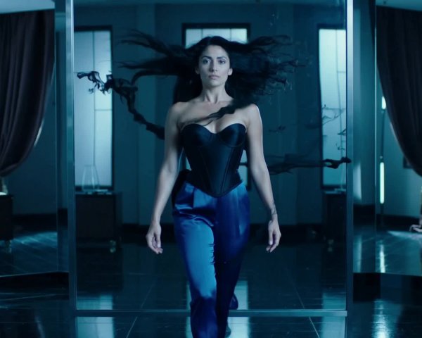 Prompt: A pale-white Lady with intricate baroque swirls texture pattern in the face, reminiscent of tattoos, standing in a grand hall filled with mirrors and ornate details. She is adorned in pastel colors, with a soft, ethereal glow surrounding her. The style is inspired by Jean-Baptiste Monge, with minimalist touches by Huy Duyhn, blending delicate beauty with surreal artistry.
