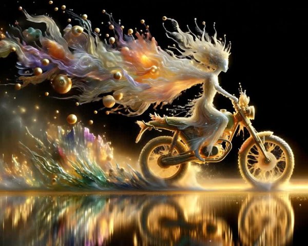 Prompt: A fantastical digital illustration depicts a serene winter scene featuring a fairy seated on a snow-covered branch. The fairy has long white hair styled in an elegant updo adorned with floral accessories. She wears a flowing, black, translucent dress with intricate lace patterns and beadwork, in shades of ivory and light gray. Her large, luminous wings are spread out behind her, displaying a mesmerizing array of pastel colors including pale pink, light blue, peach, lavender, and turquoise, all highlighted by soft, glowing illumination that creates a gentle halo effect around their edges. The fairy's posture is contemplative as she gazes down at her feet, gently touching the cold water below. One bare foot delicately touches the surface, creating circular ripples and sparkling reflections of the full moon's pale yellow glow. Icicles hang from the dark, rugged tree branches, adding to the wintry atmosphere. The background showcases a dark, starry night sky dominated by a bright full moon emitting soft white light. Surrounding the moon are scattered twinkling lights resembling fireflies or stars, casting a warm glow throughout the scene. Hanging willow branches, partially frozen and covered in frost and icicles, frame the composition, their elongated forms creating a sense of depth. Small sparkles float near the fairy, enhancing the magical ambience. The foreground features calm water with visible ripples and light reflections, creating a mirror-like effect that enhances the ethereal quality of the scene. Snow-laden rocks and icicles contribute to the enchanting setting. The overall color palette includes cool tones like midnight blue, icy blue, and silver, punctuated by warm accents such as soft pink, peach, and golden hues. The lighting is soft and diffused, creating a high contrast between illuminated elements and shadowy areas, which together evoke a mystical, tranquil, and enchanting mood.