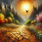 Prompt: ragged travelers, silk road, dystopian landscape, mammatus skies. oil-painting with multiple textured thick layers of detailed oil paint using the technique of glazing, 8k resolution. Textured painting by an extremely talented surrealist painter.
