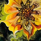 A surreal digital illustration of overlapping textures in colorful colors, creating depth and movement. High contrast, Fibonacci shapes. 3D.