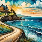 Vibrant Landscape with Red-Roofed Houses and Lake