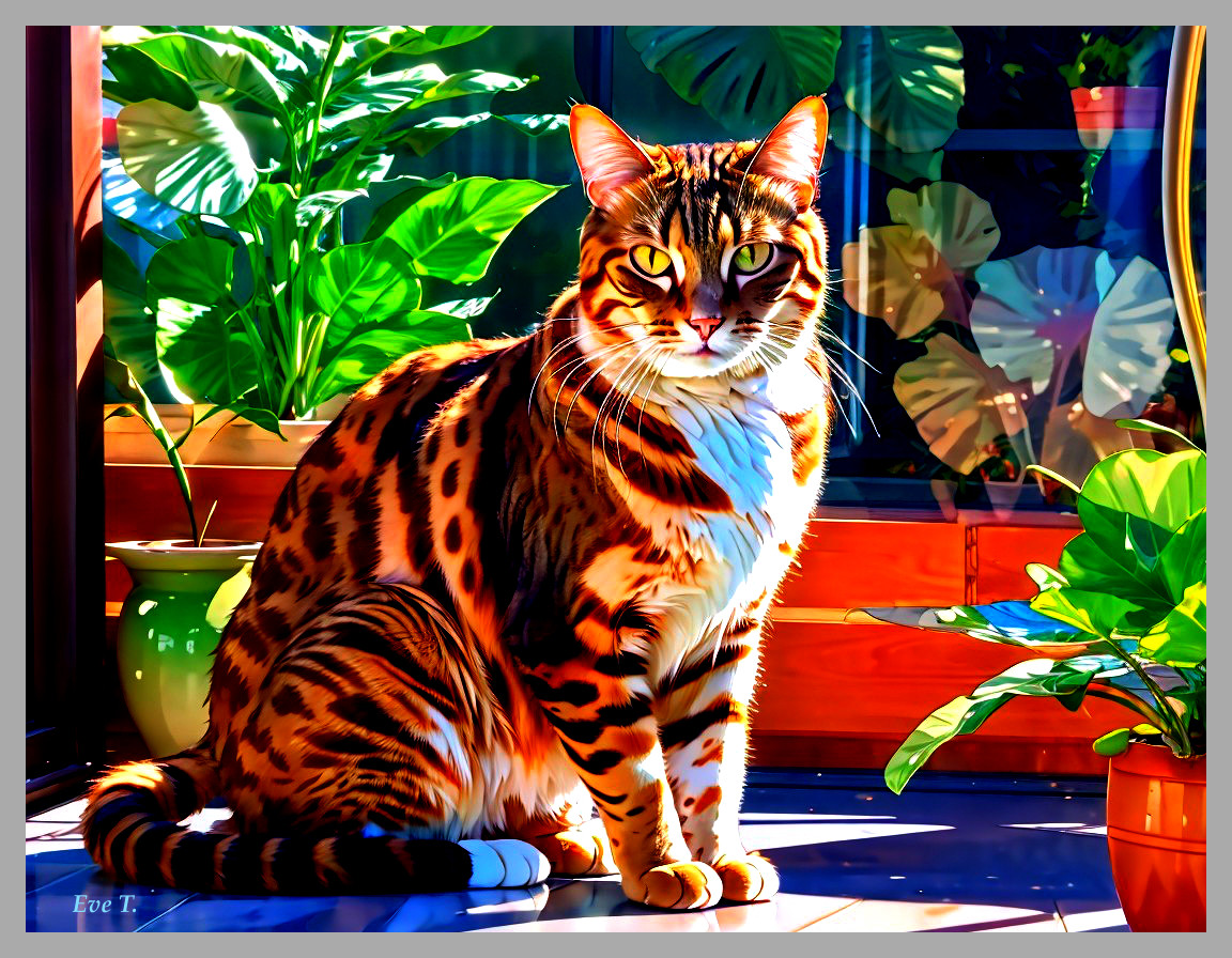 • Prompt: One Elegant cat in a sunlit conservatory.