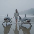Prompt: A young girl with long, flowing hair stands between two majestic leopards, her expression calm yet captivating. She wears a delicate, ethereal white dress that gently contrasts with the powerful presence of the leopards. The background is a softly blurred mix of muted colors, enhancing the focus on the girl and the big cats. The leopards, with their striking spots and intense gaze, stand protectively beside her, creating a harmonious bond between the girl and these wild creatures, evoking a sense of magic and connection with nature.