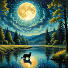 Prompt: A young boy stands on a slightly elevated grassy knoll at night, back view, gazing up in wonder at a steam train chugging through the cosmic expanse of the Milky Way above him. The train is detailed with illuminated windows. The scene is painted in a dreamy, surreal style reminiscent of children's book illustration, with a muted and atmospheric color palette dominated by blues, greens, and browns. The composition is in low angle and perspective, with the boy positioned in the lower center of the frame and the train arcing gracefully across the upper half, the cosmic background fills the sky. The lighting is soft and diffuse, with the train emitting a warm glow and subtle rays of starlight filtering down. The foreground foliage and clouds add texture, enhancing the whimsical and enchanting mood.