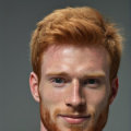 Prompt: 7/8th view, a young and muscular male alchemist bodybuilder with short tousled brown hair, shirtless with a sleeveless pale purple medieval tunic, standing at a wooden table in a medieval alchemy lab. He is carefully holding a small glass vial filled with glowing red liquid. He has a slight smile. There are other vials on the table, with liquids in other colors: purple, green, yellow, red, and blue. The background features shelves with various potion bottles, a large glowing crystal, and warm, ambient lighting from glowing lanterns and a large arched stained-glass window, creating a mystical, enchanted atmosphere. create perfect eyes and anatomically correct hands.