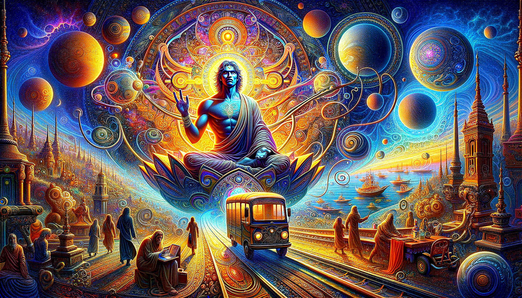 Prompt: Timothy Leary's dead _ No, no, no, no, he's outside, looking in _ He'll fly his astral plane _ Takes you trips around the bay, Brings you back the same day _ Timothy Leary