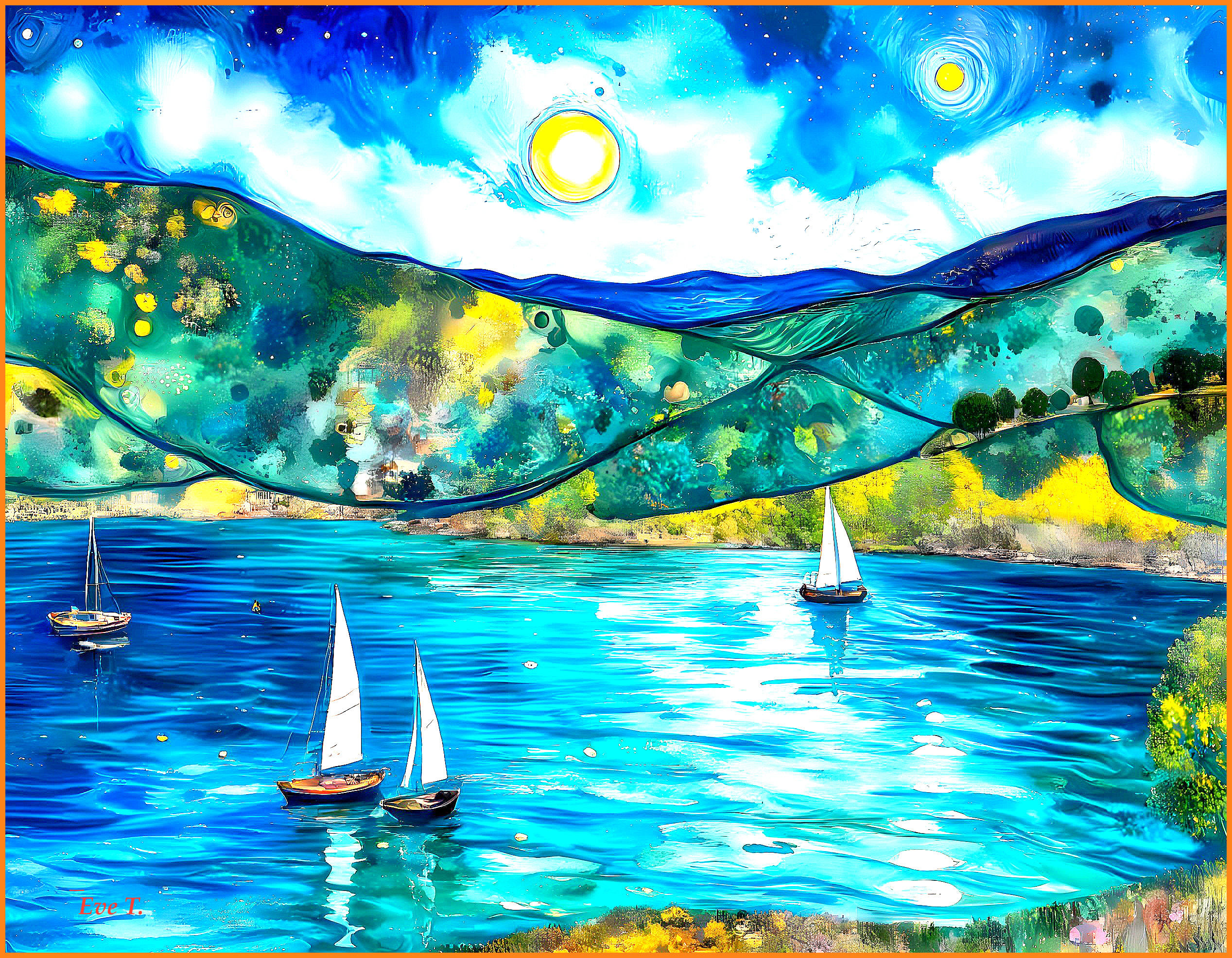 Prompt: In the style of Vincent van Gogh, envision a serene countryside scene bathed in the warm glow of the setting sun. A rustic farmhouse stands amidst fields of vibrant sunflowers, their golden petals swaying gently in the breeze. The sky above is alive with swirling clouds painted in bold, expressive strokes of blue and yellow, creating a mesmerizing tapestry of color. In the distance, rolling hills cascade into the horizon, their contours softened by the fading light. A lone figure, reminiscent of van Gogh himself, strolls along a winding path, lost in contemplation amid the tranquil beauty of the countryside