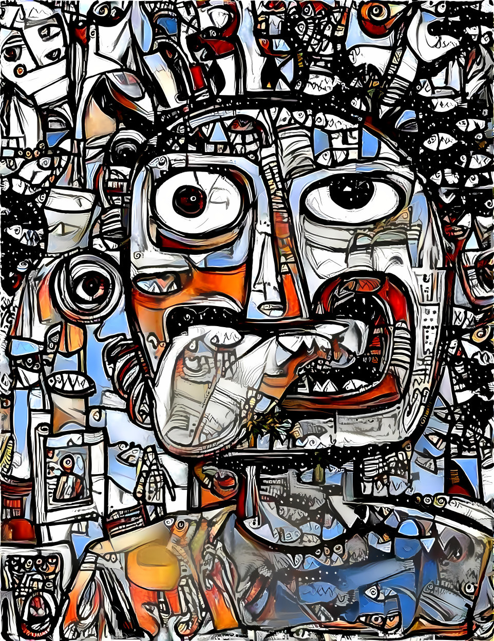 Prompt: (Masterpiece), ((The artwork showcases a striking silhouette of a woman in dark blue against a vivid backdrop of red, orange, and yellow geometric shapes, embodying strength and movement. The style blends fantasy and elegance, evoking wonder through intricate details and vibrant colors, reminiscent of watercolor and pencil techniques, Side view, Complex stipple texture, Abstract expressionism surrealism, Pop art)), Inspired by the style illustrations of Edward Gorey and Tomasz Setowski, Use stunning color oil drawing on textured paper, As if created by Gustav Klimt, Amanda Clark, Catrin Welz-Stein, Zdzisław Beksiński, Dee Nickerson, Van Gogh.
