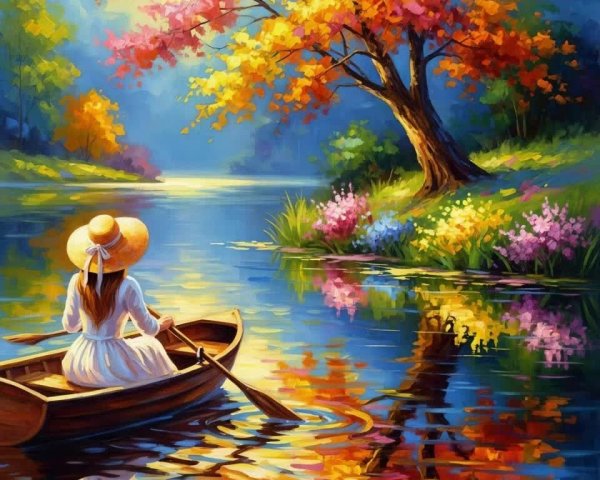 Prompt: A whimsical scene featuring a muscular man riding a brown horse, with a playful character in a red and black costume with exaggerated pigtails sitting on the horse beside him. The backdrop showcases towering, jagged mountains, and a vibrant double rainbow arcs across a clear blue sky. The water below is calm, reflecting the colorful rainbow and the mountainous landscape, creating a fantastical and adventurous atmosphere.